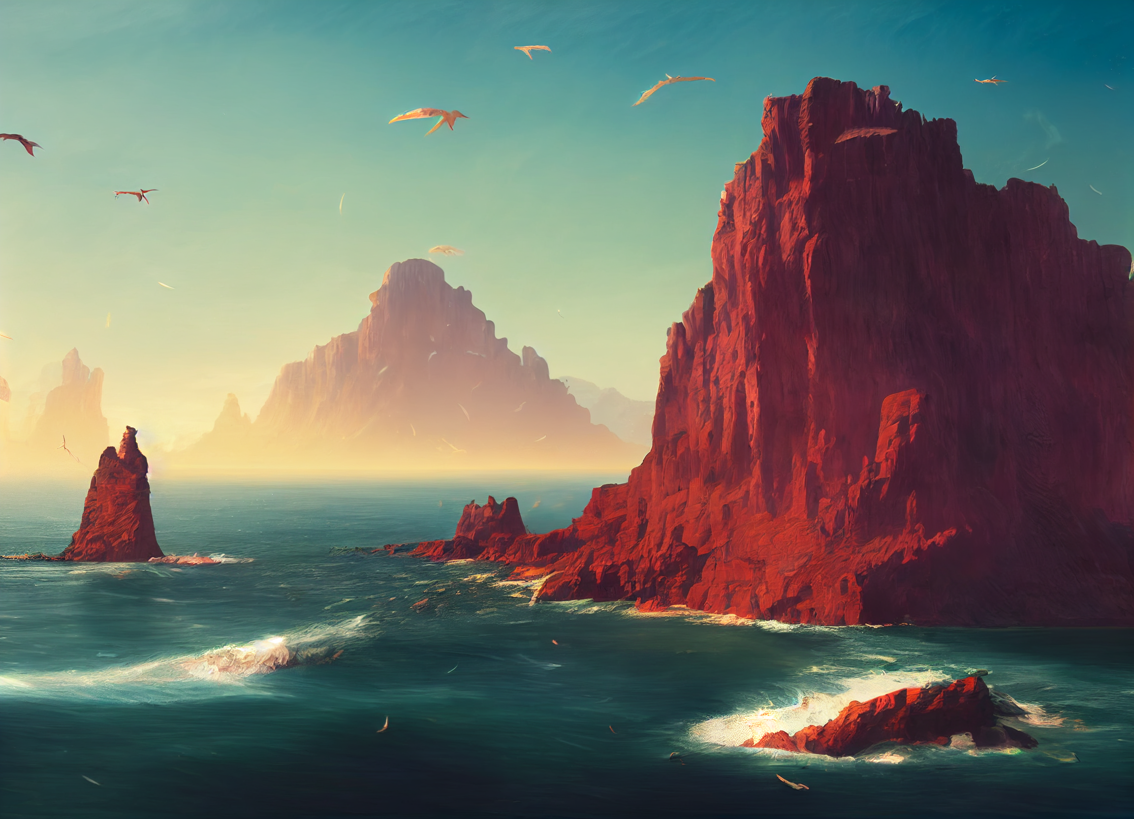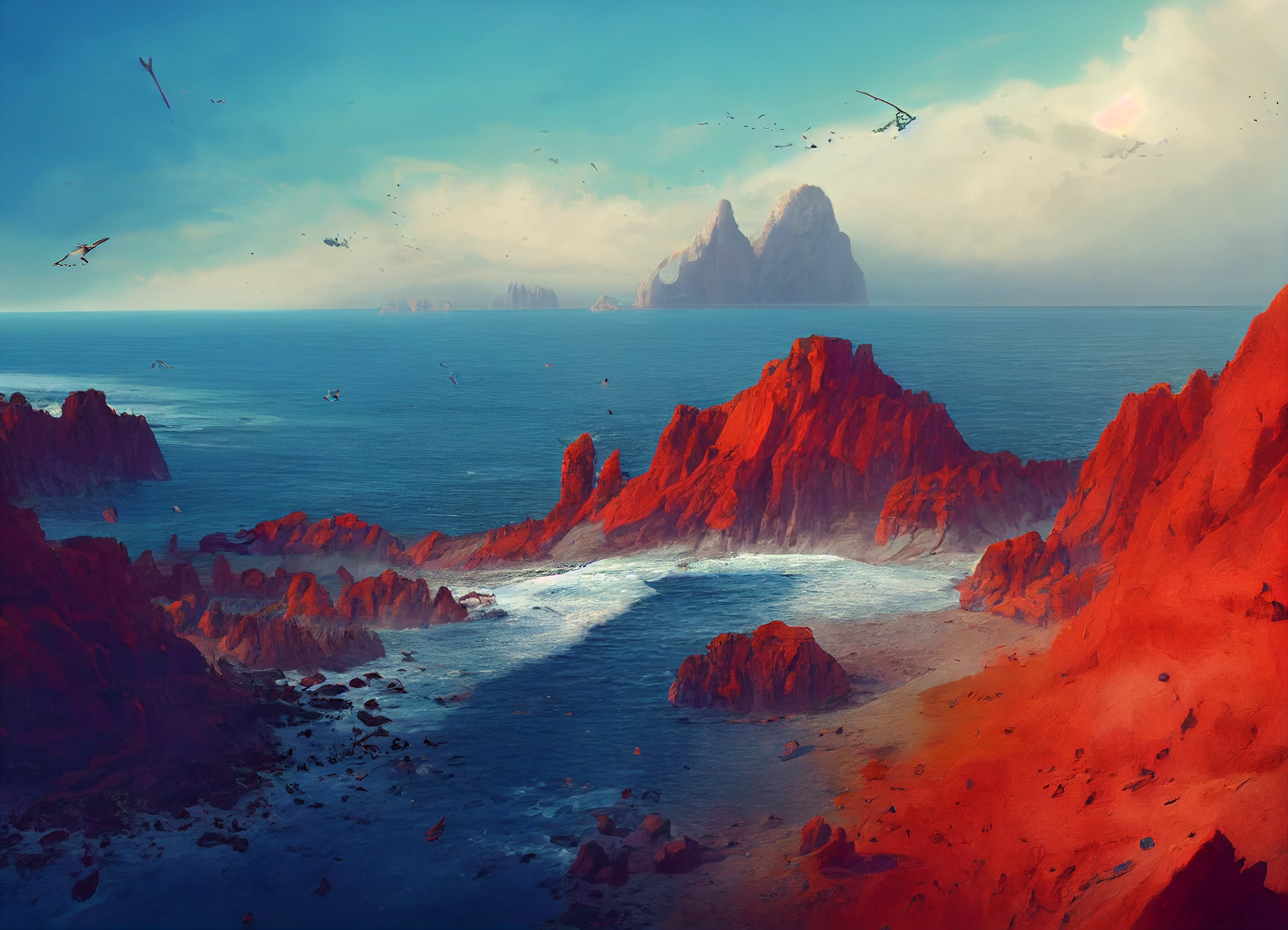 The Vermillion Isles, called Chasoka (SHA-soh-kah) by the kenku who inhabit them, are an archipelago in the ~Eastern Islands~ of the eastern Green Sea. These islands are formed primarily from red stone, creating dramatic red cliffs that rise from the ocean, and red stone pillars the dot the scrubby, semi-arid interior of the islands.