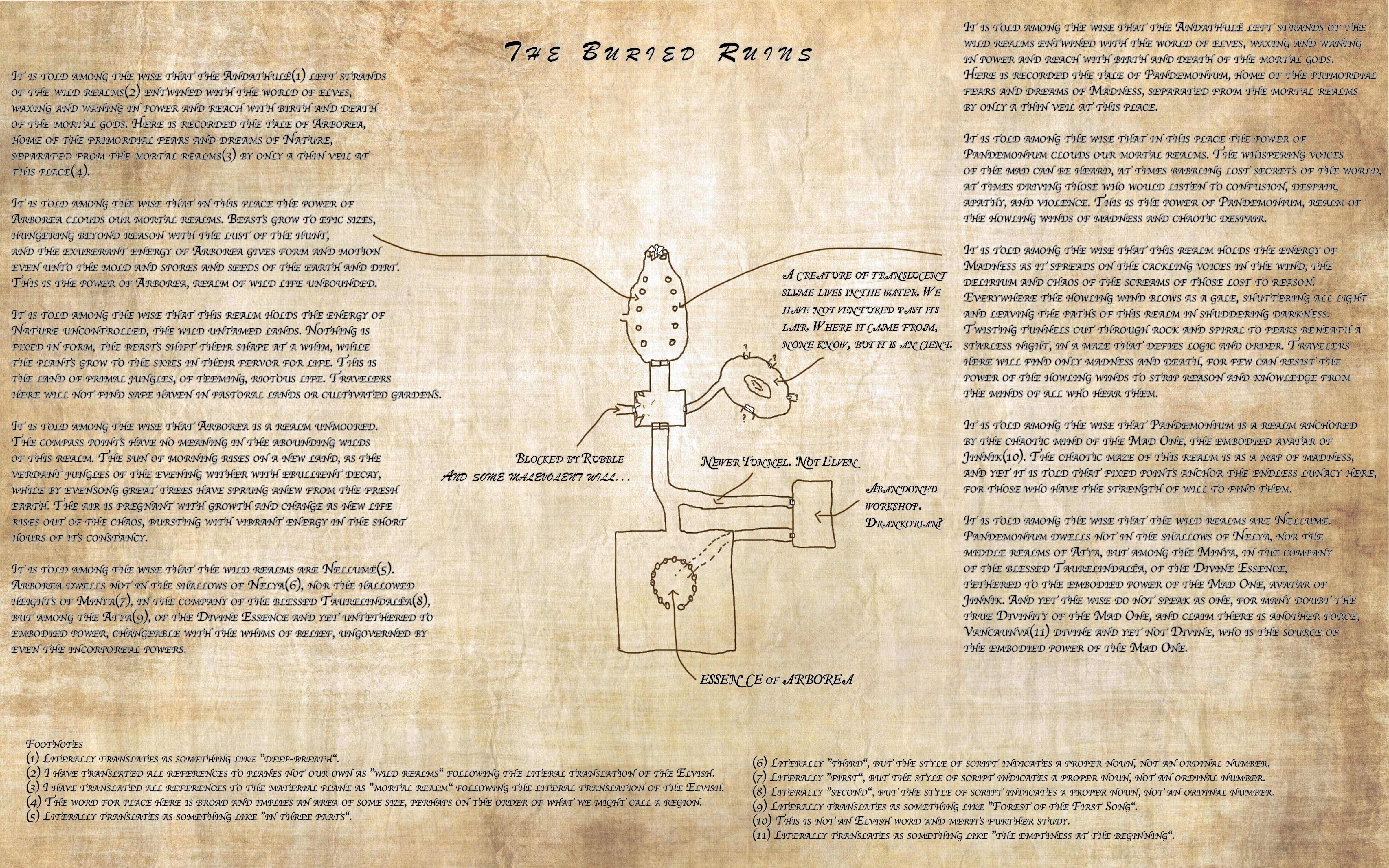 Thousands of years ago, when Dunmar was a great elven forest, there was a low hill where the Lakan Monastery is now, and at the center of the hill was a place where the connection to the outer plane of Arborea, a place of wild, uncontrolled nature, was particularly strong.
