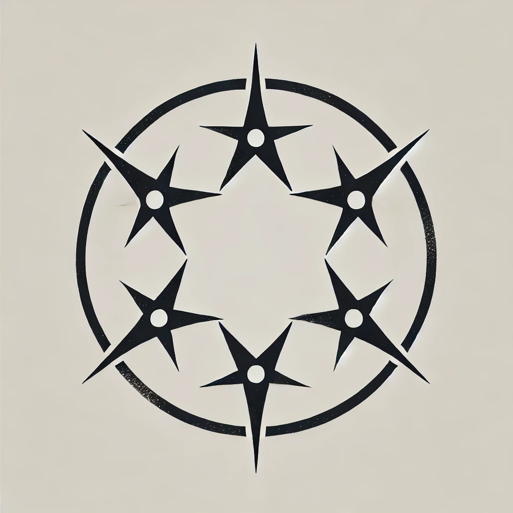 Her holy symbol is a crown of stars, usually depicted as five or six stylized stars in a circle, representing a top-down view of the points of a crown. Sometimes, instead of a stylized crown, she is represented by three stars in an arch with an implied horizon, representing the transition between day and night (and also between life and death).