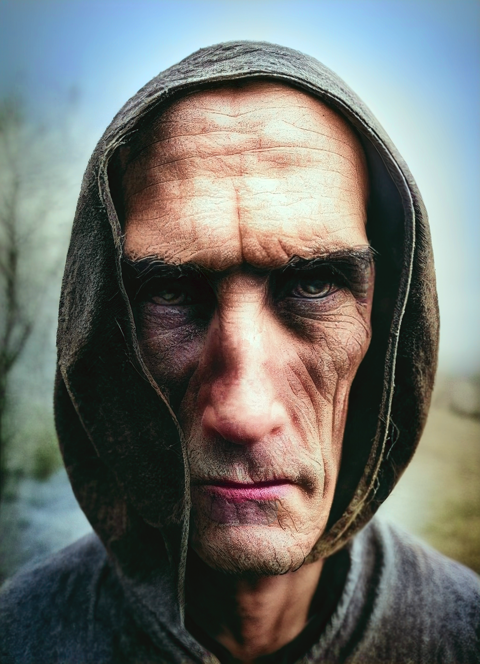 A tall Chardonian man, cloaked and hooded, wearing dark, travel-stained leather armor, without obvious weapons. A spellcaster, who took on an undead visage in combat and whose spirit seems touched by a darkness.