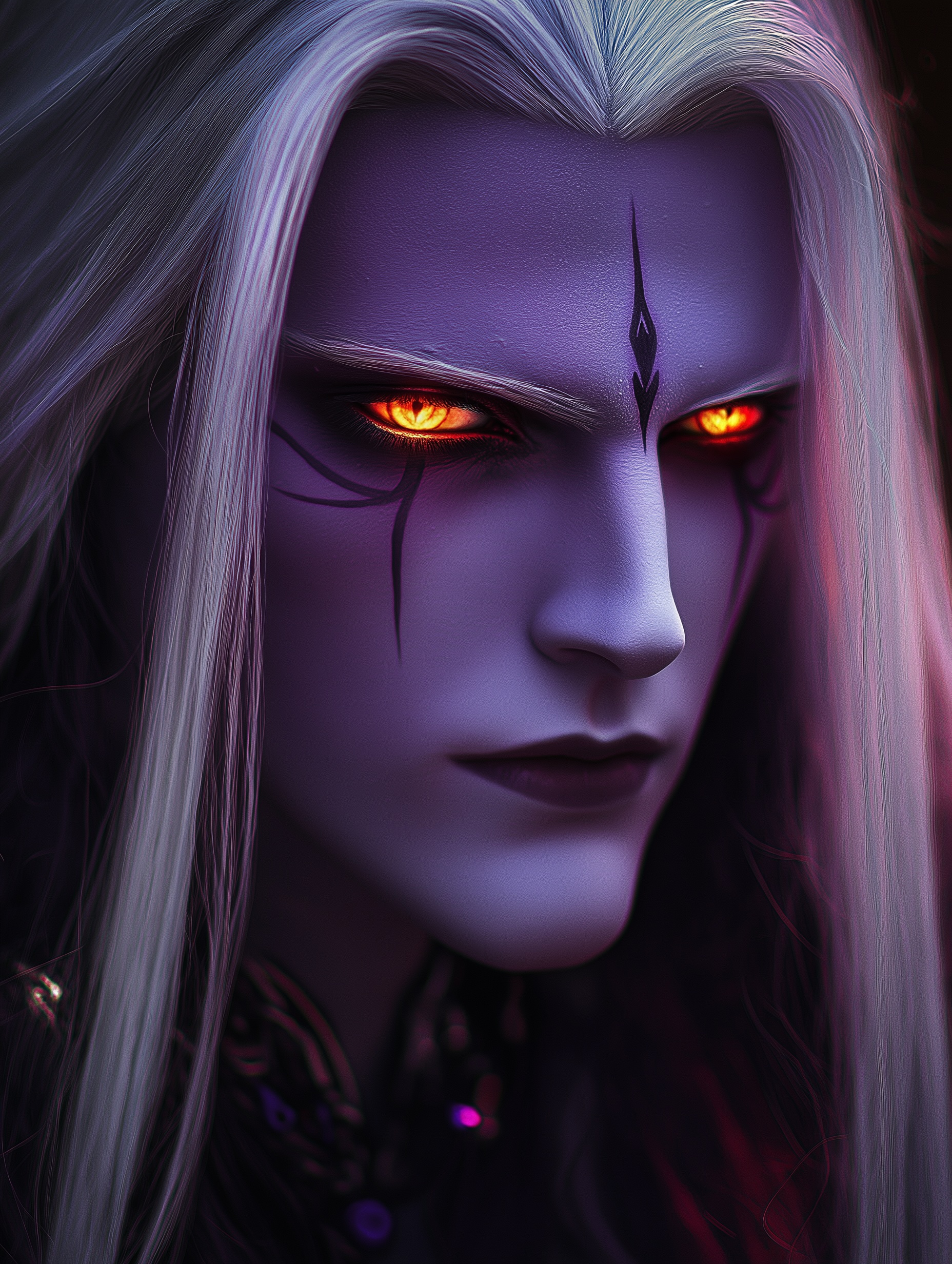 Lord Serenveil, know as the Prince of the Vesperwind and the Guardian of Twilight’s Edge, is a tall, towering figure, with long flowing silver hair, fiery eyes, like fading sunset, and dark skin. He usually dresses in robes that shift colors between deep purples, dusky blues, and silvery grays.