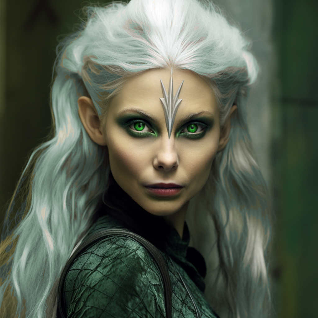 Caelynn is an elegant elfin woman of ambiguous age, with long silver hair and strikingly vibrant green eyes. She resides in an unassuming house close to the University. Inside, there’s a perpetual feeling of twilight. She often greets guests in a tea room, which boasts a unique circular table, which always seems to have space somehow to accommodate anyone who she invites to sit, while never feeling large.