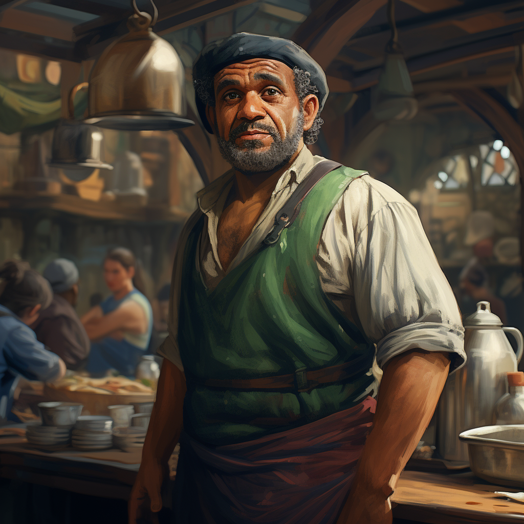 Wendel is the long-time proprietor of The Windward Sail, a busy sailor’s tavern in Fiskurth. Known as a place for tales and stories - some true, many not - and a place for gossip, as well as a place to find a crew. Has a few dirty, cramped rooms stacked with “human sized” bunks, and some slightly more comfortable halfling rooms.
