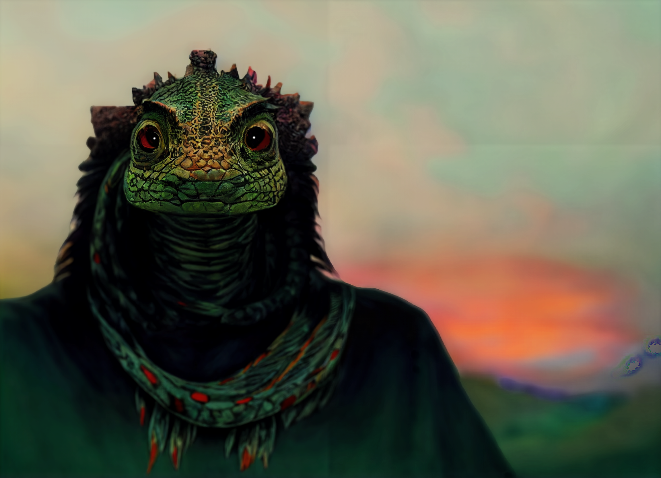 A lizardfolk man in the prime of his life, a prophet, seer, and spirit guide who has deeply felt visions and exceptional perception into the spirit realms. A bit of an outcast in his village, seen as someone who sees trouble in everything.