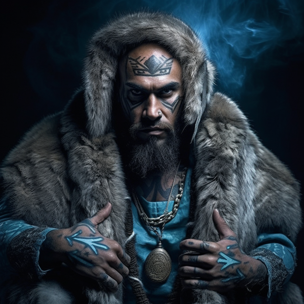 Vaallinen (va-lin-en), a Skaer man with the traditional blue facial tattoos of Skaer priests, is the hakeasa (speaker to the gods) for Pyhlla. Born and raised in the region, he is locally known for his connection to the divine.