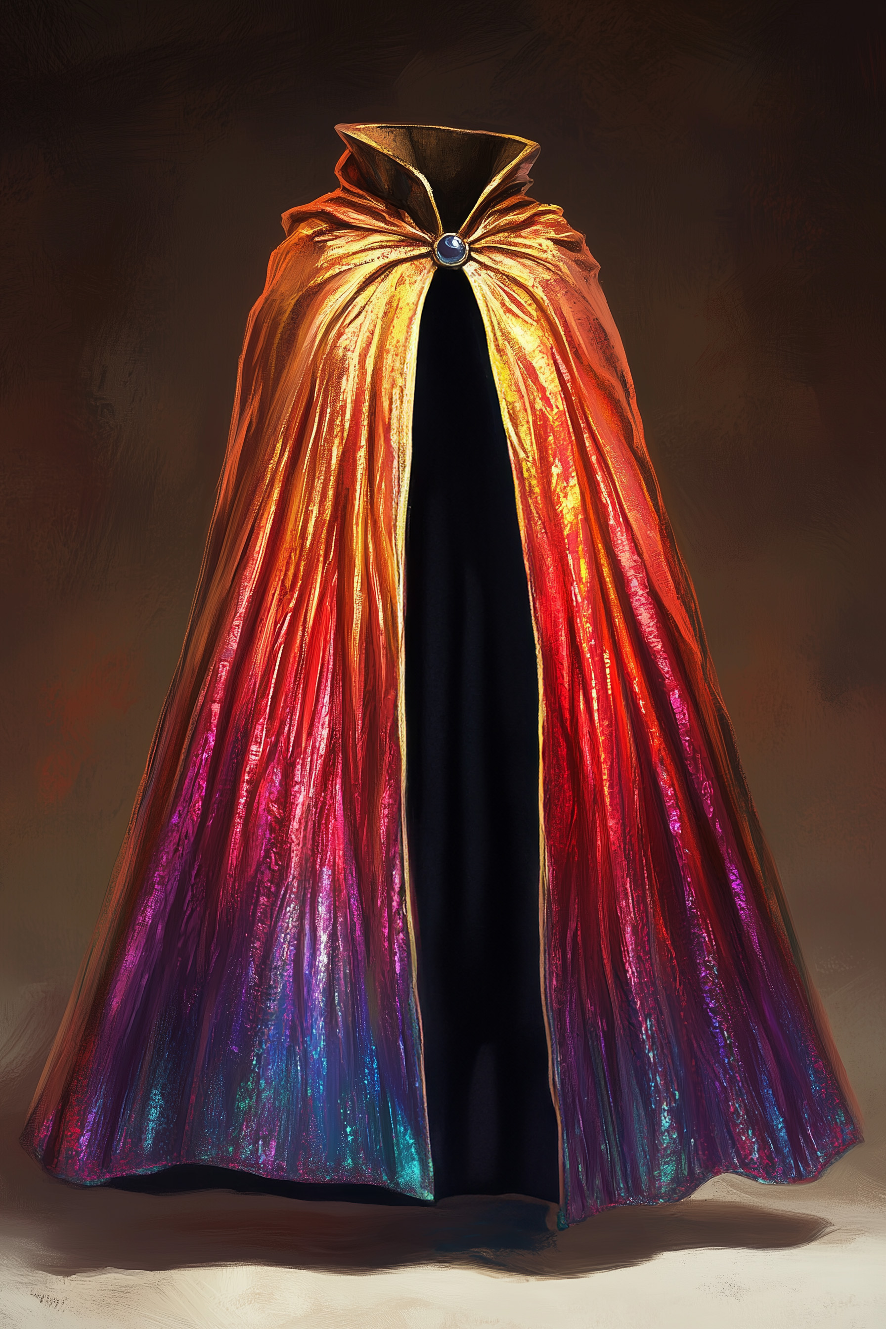 The Cloak of Rainbows is a multi-colored shimmering cloak, made of the threads of sunset woven by the Cloudspinner, and enchanted with powerful magic to shield the wearer from the sight and power of the Divine. The colors change with the light and the sun, shifting darker or lighter seemingly with the whims of fate.